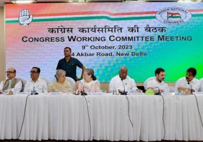 9 Oct, 2023 10:20 PM IST | SAMIKSHASAGAR.COMनई दिल्ली AICC हेडक्वॉर्टर में हुई बैठक के दौरान सोनिया गांधी, प्रियंका गांधी, राहुल गांधी, मल्लिकार्जुन...