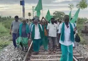 कावेरी जल विवाद नहीं थम रहा , किसान संघ ने रेलवे ट्रैक पर किया विरोध प्रदर्शन