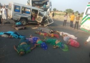 क्रूजर और ट्रक में हुई भीषण टक्कर, 11 लोगों की मौत, 7 घायल