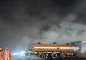 ओडिशा में एसिड से भरे टैंकर में बीच सड़क पर हो रहा रिसाव, फायर ब्रिगेड की टीम पहुंची