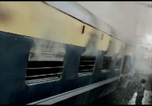 पटरी पर खड़ी रेल में आग लगी, तूफान के बाद रेलवे संचालन-सुविधा बहाल करने जुटी