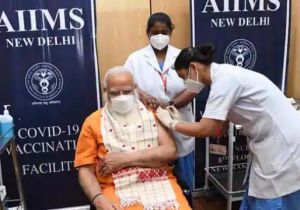 कोरोना टीके की दूसरी खुराक प्रधानमंंत्री नरेंद्र मोदी ने दिल्ली के एम्स अस्पताल में ली