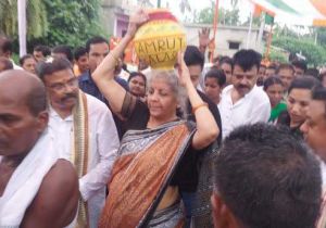 सीतारमण ने लोगों को 'पंच प्रण' की शपथ दिलाने के साथ पुरी में शहीद के गांव की माटी एकत्रित की
