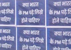 AAP ने दफ्तर के बाहर लगाये पोस्टर- 'क्या भारत के PM पढ़े-लिखे होने चाहिए?'