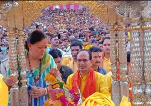CM शिवराज और वसुंधरा ने खींचा मां पीताम्बरा का रथ, शोभायात्रा में 2 लाख ज्यादा श्रद्धालु जुटे