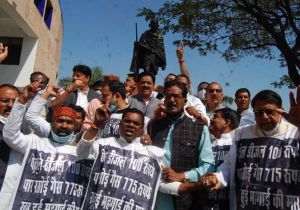 कांग्रेस विधायकों ने आज एप्रिन पहनकर पेट्रोल-डीजल के दामों में वृद्धि पर नियंत्रण न करने पर विरोध जताया