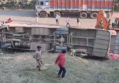 यात्रियों से भरी बस हुई दुर्घटनाग्रस्त