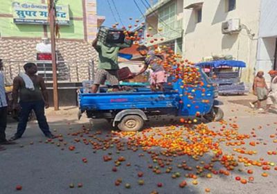 नहीं निकल रही लागत: बाजार में किसानों ने फेंके टमाटर