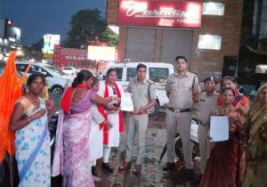 शिवसेना की महिलाओं ने दिया बढ़ते अपराध के खिलाफ धरना