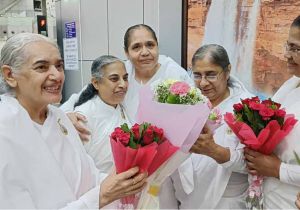 रूहानी सिन्धी सम्मेलन में भाग लेने लंदन से ब्रह्माकुमारी जयन्ती दीदी रायपुर पहुंची, विमानतल में हुआ स्वागत
