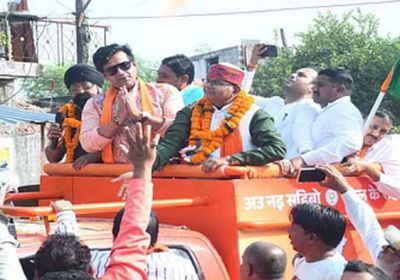 भाजपा सांसद रविकिशन ने पार्टी प्रत्याशी के पक्ष में किया रोड शो, बघेल सरकार पर साधा निशाना