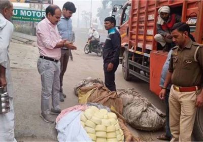 उत्तर प्रदेश में बागपत के बड़ौत नगर में त्यौहारों के मद्देनजर मिलावटी मावे की गाड़ी जब्त कर 5 कुंतल मावा कराया गया नष्ट
