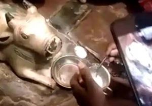 कई जिलों में नंदी के दूध पीने की अफवाह, मंदिरों में उमड़ी भीड़; भक्त का दावा- चम्मच लगाते ही दूध हो रहा गायब