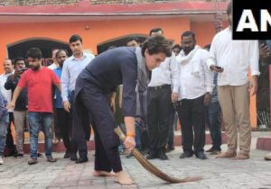लखनऊ की दलित बस्ती में झाड़ू लगाती दिखीं प्रियंका गांधी, बोलीं- स्वाभिमान और सादगी का प्रतीक है ये
