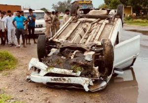 बेकाबू कार ने दो लोगों को रौंदा, एक की मौत, तीन घायल