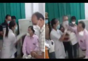 जिला अस्पताल में दारोगा के सामने नर्स और डॉक्टर में मारपीट