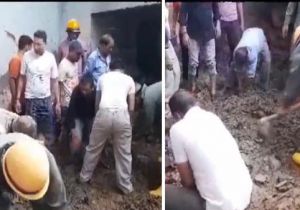आगरा में मकान ढहा, मलबे में फंसे परिवार के लोग