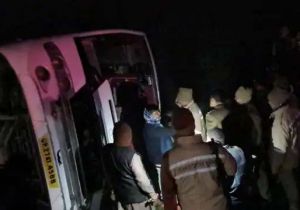 शाहजहांपुर से दिल्ली जा रही डबल डेकर बस खाई में पलटी, 50 घायल
