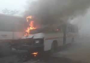 तेज रफ्तार रोडवेज बसों में टक्कर के बाद लगी आग, दर्जनों घायल अस्पताल में एडमिट