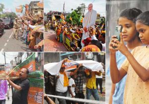 योगी के शहर में हर-हर मोदी, घर-घर मोदी; तस्वीरों में देखें- घनघोर बारिश भी नहीं तोड़ सकी शहरवासियों का हौसला