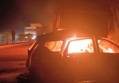 10 Dec, 2023 08:41 PM IST | SAMIKSHASAGAR.COMबरेली उत्तर प्रदेश में बरेली-नैनीताल हाइवे पर डंपर से टक्कराने से कार में आग लग गई...