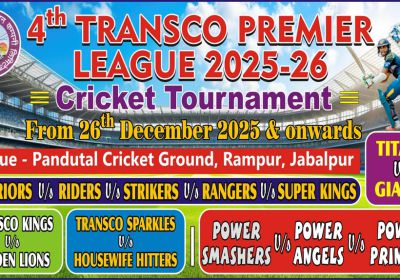 25 Dec, 2025 05:11 PM IST | SAMIKSHASAGAR.COMट्रांसको प्रीमियर क्रिकेट लीग 26 दिसम्बर से जबलपुर एम.पी. ट्रांसको (मध्यप्रदेश पावर ट्रांसमिशन कंपनी) मुख्यालय, जबलपुर में...