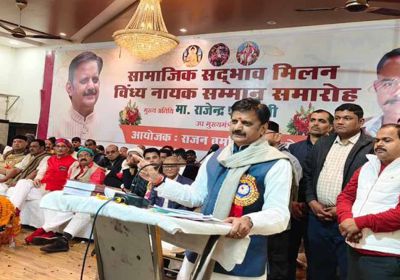 21 Dec, 2025 09:26 PM IST | SAMIKSHASAGAR.COMसामाजिक सद्भाव मिलन एवं विन्ध्य नायक सम्मान समारोह में हुए शामिल भोपाल उप मुख्यमंत्री श्री राजेन्द्र शुक्ल...