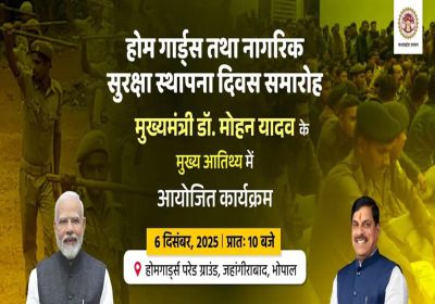 6 Dec, 2025 10:51 AM IST | SAMIKSHASAGAR.COMमध्यप्रदेश में 6 दिसंबर को होमगार्ड एवं नागरिक सुरक्षा स्थापना दिवस का आयोजन मुख्यमंत्री डॉ. मोहन...