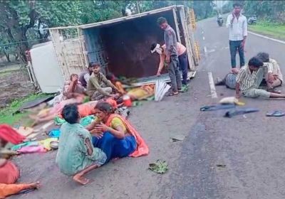 रायसेन में मजदूरों से भरी पिकअप पलटी, 28 घायल, 5 की हालत गंभीर