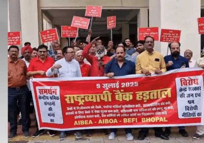 9 Jul, 2025 03:01 PM IST | SAMIKSHASAGAR.COMभोपाल बुधवार को मध्य प्रदेश में 40 हजार बैंककर्मी ने हड़ताल शुरू कर दी है। यह...