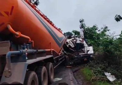 भीषण सड़क हादसा : कंटेनर और ट्रक की टक्कर, डेढ घंटे की मशक्कत के बाद निकला ड्राइवर का शव