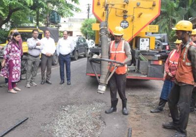 भोपाल में जैट पेचर तकनीक से सड़कों के गड्ढे भरने के कार्य का प्रदर्शन