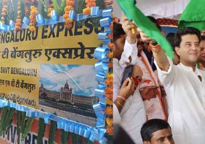 ग्वालियर–एसएमवीटी बेंगलुरु एक्सप्रेस को केंद्रीय मंत्री सिंधिया ने दिखाई हरी झंडी