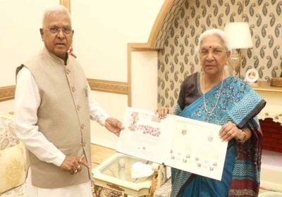 राज्यपाल मंगुभाई पटेल से उत्तरप्रदेश की राज्यपाल श्रीमती आनंदीबेन पटेल की सौजन्य भेंट