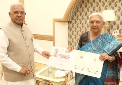 राज्यपाल मंगुभाई पटेल से उत्तरप्रदेश की राज्यपाल श्रीमती आनंदीबेन पटेल की सौजन्य भेंट