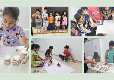 ग्रीष्मकालीन अवकाश में रचनात्मक गतिविधियों से जुड़े विद्यार्थी