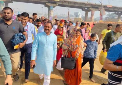 बिना वीआईपी प्रोटोकॉल के मप्र सरकार के मंत्री राकेश शुक्ला ने सपरिवार लगाई महाकुंभ में डुबकी