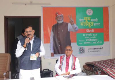 विष्णुदत्त शर्मा ने रविवार को दिल्ली में पार्टी कार्यकर्ताओं की बैठक कर घर-घर जनसंपर्क कर भाजपा को वोट देने की अपील