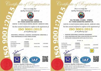 पॉवर जनरेटिंग कंपनी जबलपुर के दो कार्यालयों को मिला आईएसओ 9001 सर्टिफिकेशन