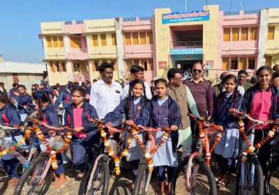 मंत्री चौहान ने छात्राओं को साइकिल वितरित की