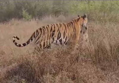 पर्यटकों ने बाघ पी-141 को एक हिरण का शिकार करते हुए देखा, पर्यटकों ने इस रोमांचित पल को किया कैद