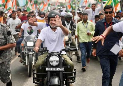बिहार की बुलेट पर सवार दिखे राहुल गांधी, पीछे कांग्रेस अध्यक्ष राजेश कुमार बिना हेलमेट