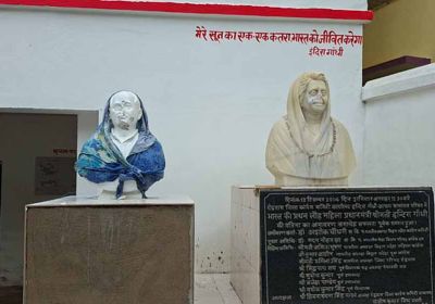 इंदिरा गांधी और पंडित गिरीश नारायण मिश्र की प्रतिमा खंडित, कांग्रेस ने किया विरोध प्रदर्शन