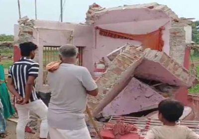 अनियंत्रित हाइवा ने मंदिर को ढहाया, मलबे में दबा शख्स