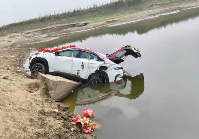 पुल से गिरी दूल्हे की गाड़ी, बाल-बाल बची पांच लोगों की जान