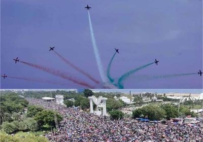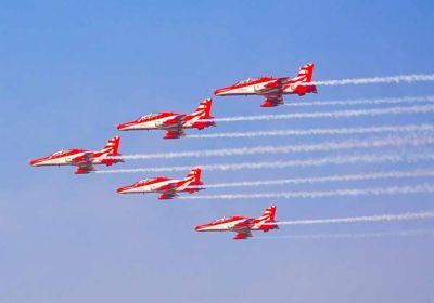 भारतीय वायु सेना की प्रतिष्ठित एसकेएटी का ‘एयर शो' देख मंत्रमुग्ध हुए दर्शक