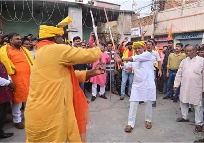 8 Apr, 2025 03:15 PM IST | SAMIKSHASAGAR.COMजमशेदपुर झारखंड के जमशेदपुर में सोमवार को विसर्जन यात्रा के दौरान रामनवमी झंडा के बिजली के...