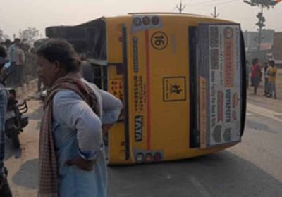 मुजफ्फरपुर में तेज रफ्तार स्कूली बस पलटी