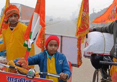 बोधगया के रहने वाले प्रकाश गुप्ता ने अपने आठ साल के बेटे के साथ साइकिल से वैष्णो देवी की यात्रा शुरू की