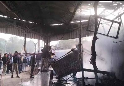 नवादा के पुराने रेलवे स्टेशन पर अचानक लगी आग, लपटें इतनी तेज थी किबुक स्टॉल को अपने आगोश में लिया